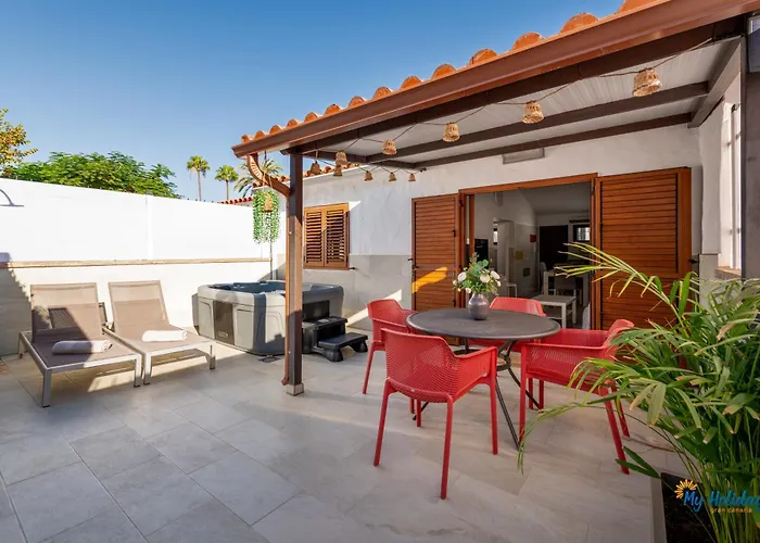 De Vuurtoren van Maspalomas ligt 2 km verderop en het Parque Botánico de Maspalomas ligt op sechts 20 minuten te voet van Villa Sun Paradiso Maspalomas van 100 m².